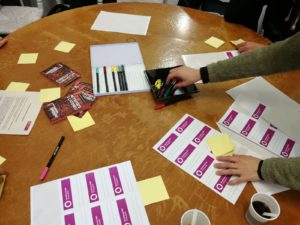 La dinàmica era senzilla, després d’un cafè, inscriure’s o corroborar assistència, l’objectiu era una taula plena de post-its. Hora d’escriure i deixar penjat al plafó el tema o inquietud que hi havia més ganes de parlar, treballar, debatre.